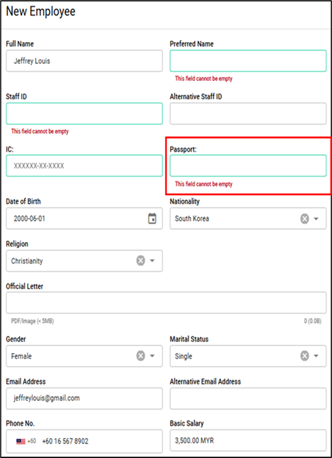 b) After entering the employee information, click the “Import Employees From Template” button to upload the completed Excel file back into the system.