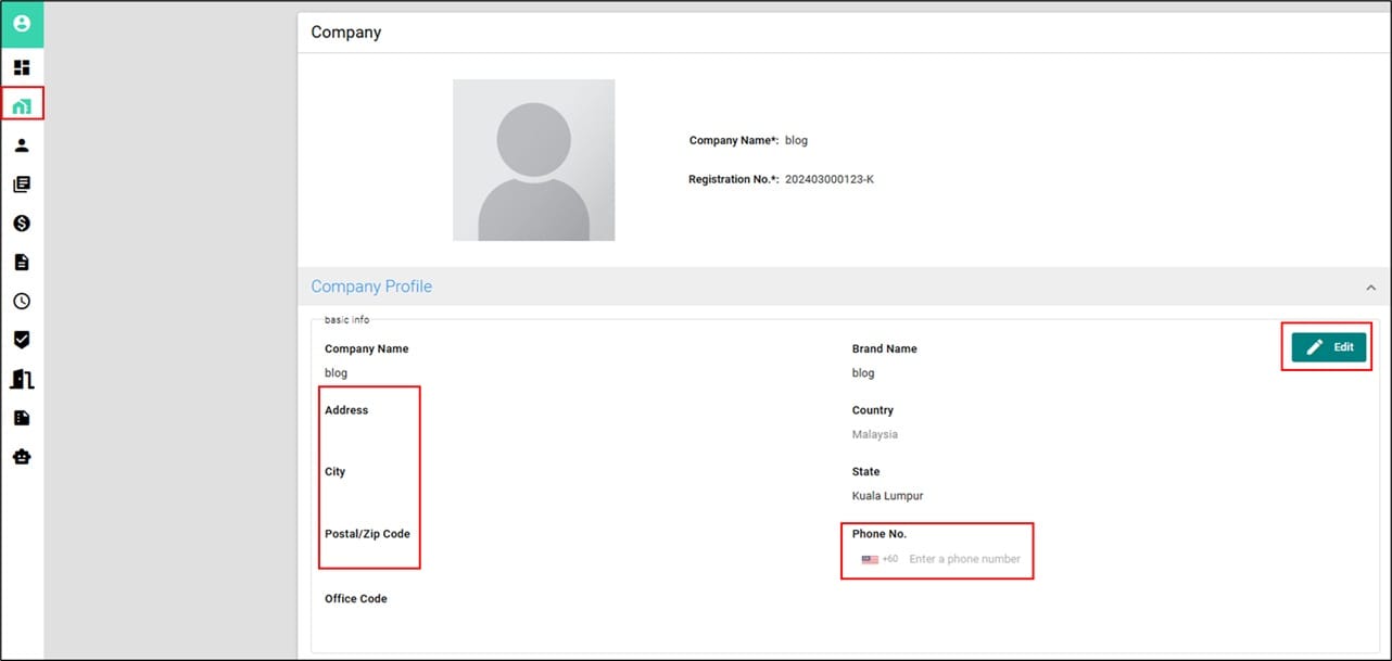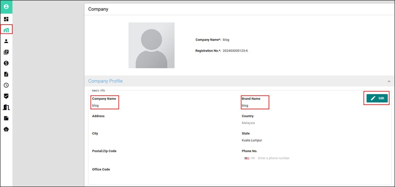 a) Click on the profile picture and upload your company logo or photo.